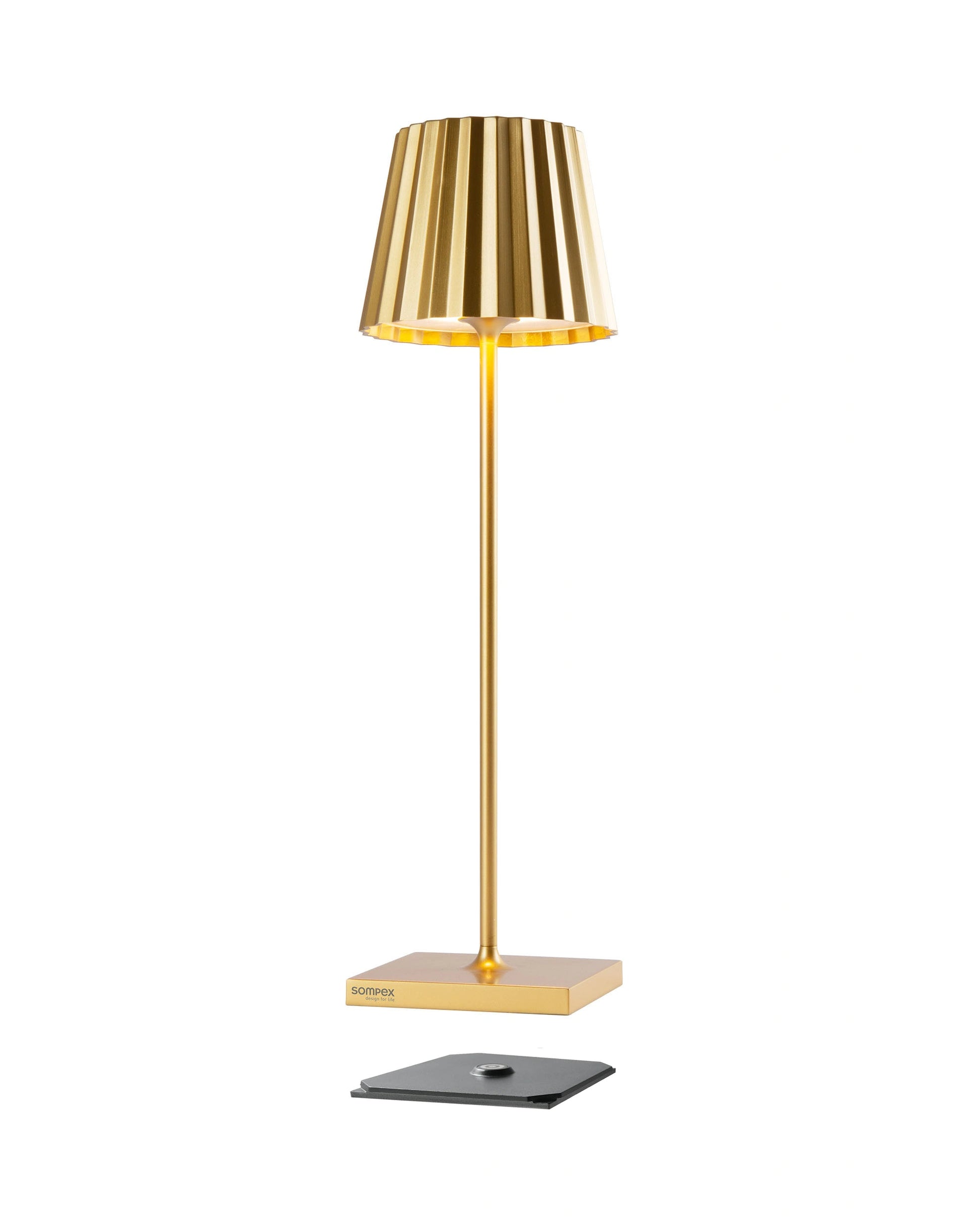 This elegant table lamp combines a refined silhouette with a surprising amount of flexibility. The characteristic pleated shade gives the lamp a timeless look, while the wireless operation makes it very contemporary. Perfect for an atmospheric table setting indoors, but just as suitable for a long summer evening outdoors.